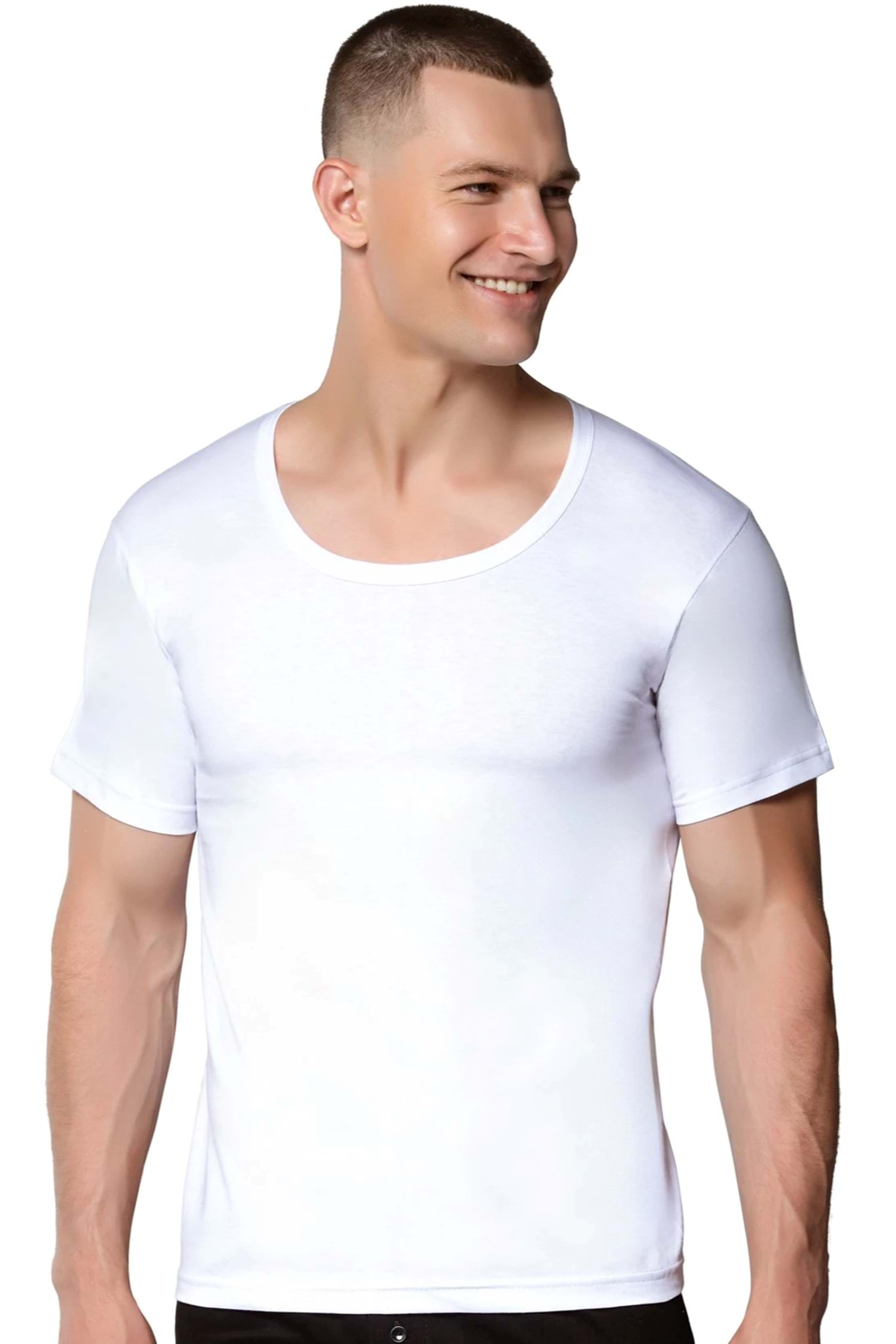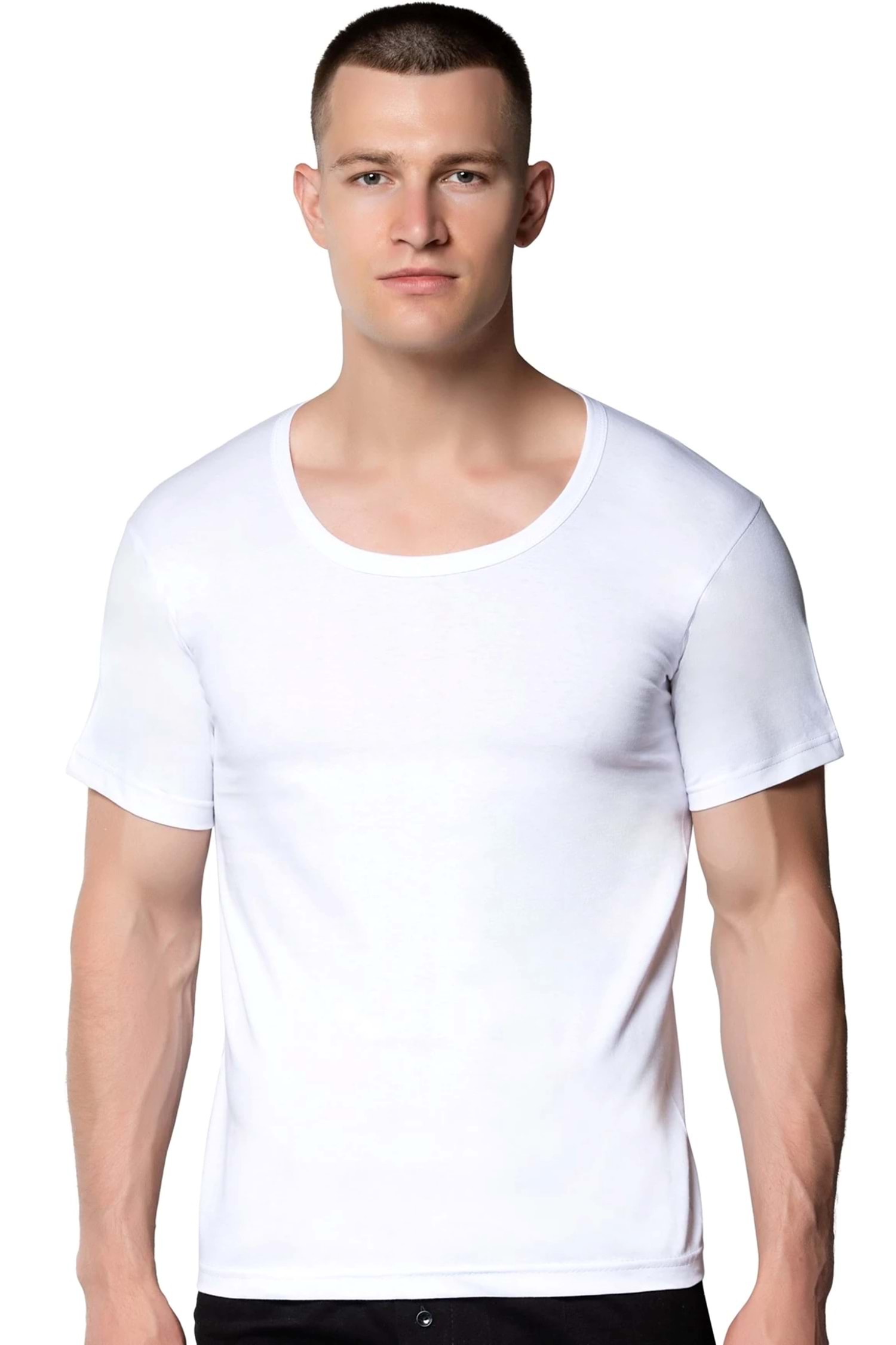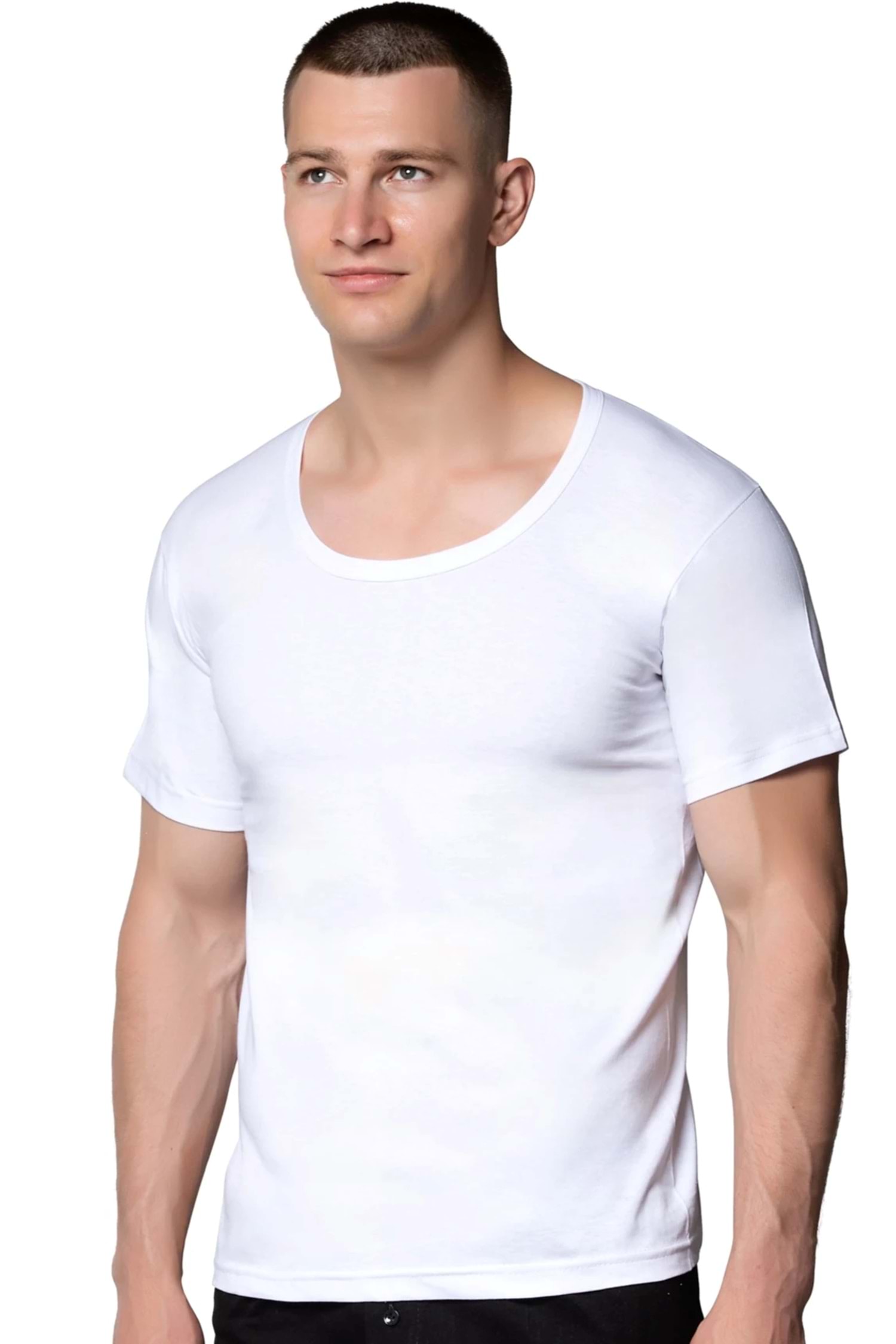 Erkek Penye Geniş Yaka Fanila Beyaz