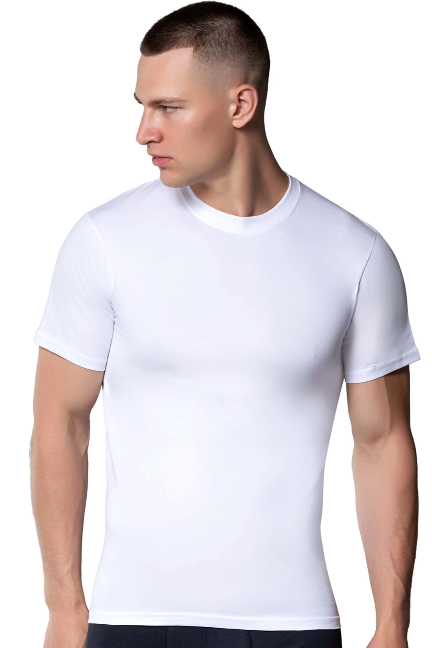 Erkek Penye Sıfır Yaka Fanila Beyaz