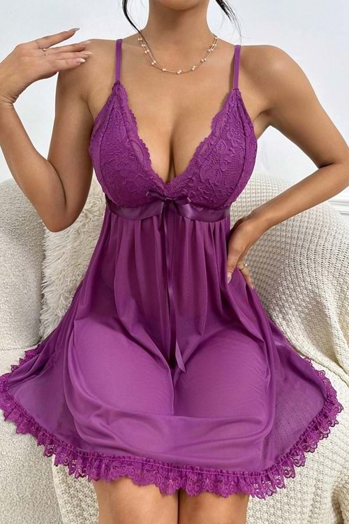 Kadın Fantezi Elbise Takım Mor