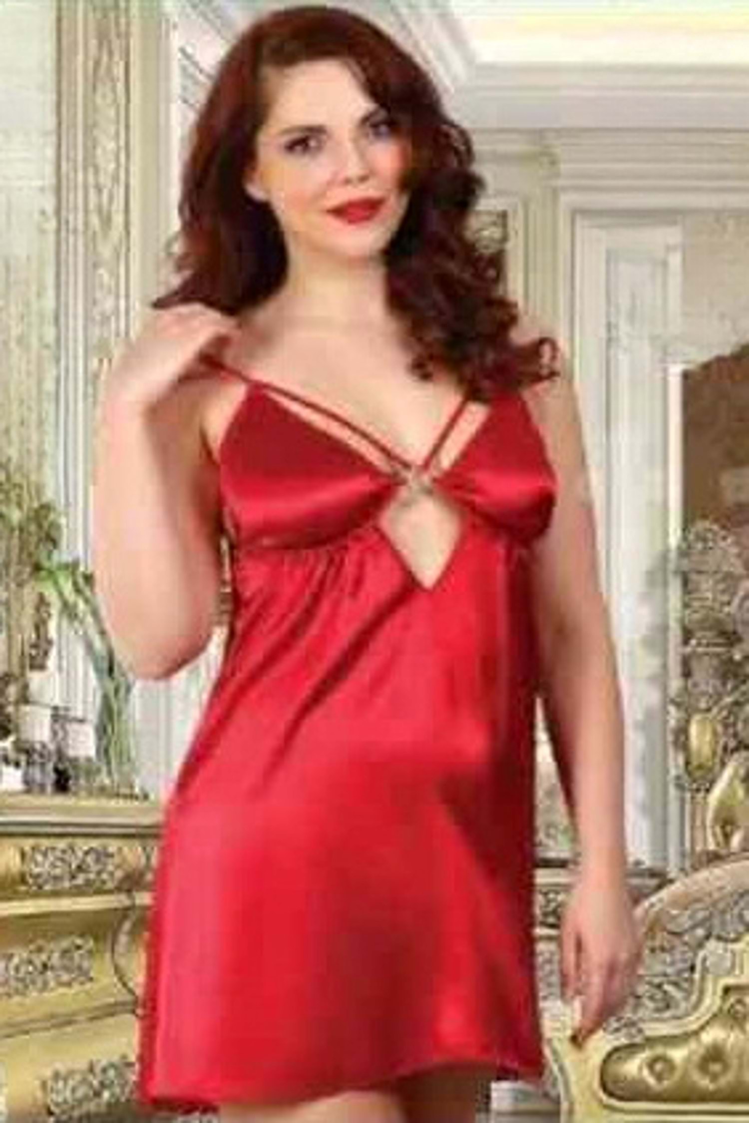 Kadın Saten İp Askılı Elbise Gecelik Bordo