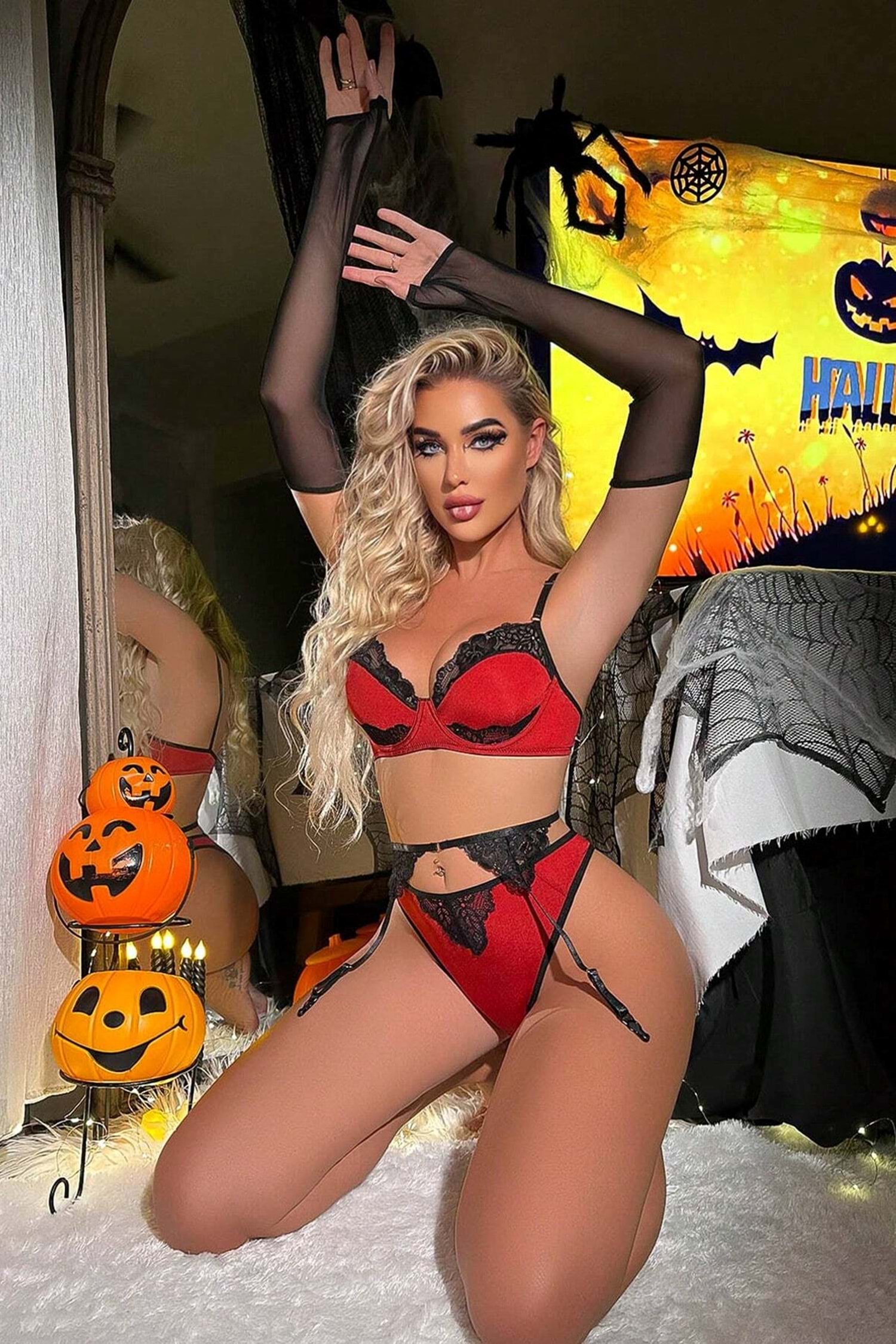 Kadın Fantezi Jartiyer Takım Kırmızı