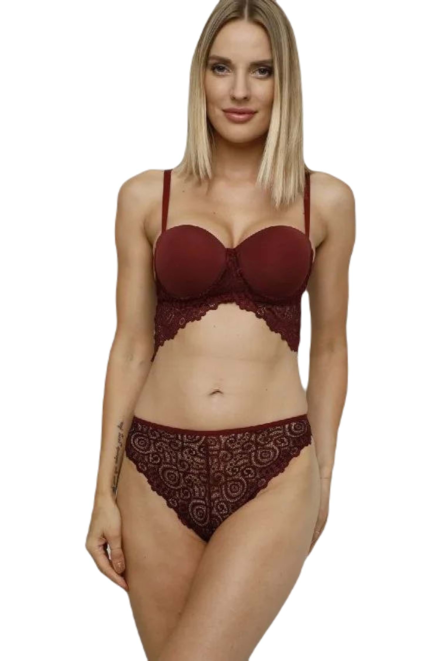 Kadın Dantel Detaylı Destekli (Push-Up) Balenli B Kalıp Helena Sütyen Takım